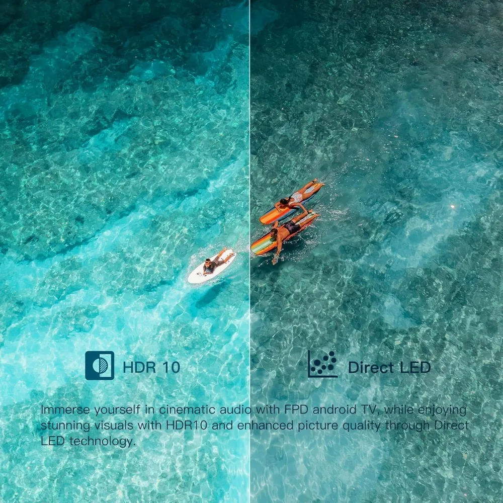【720p HD & HDR10】Experience breathtaking visuals with 720p HD clarity and HDR10 technology. Crisp details, vibrant colors, and enhanced contrast come together to deliver a truly immersive and captivating viewing experience.