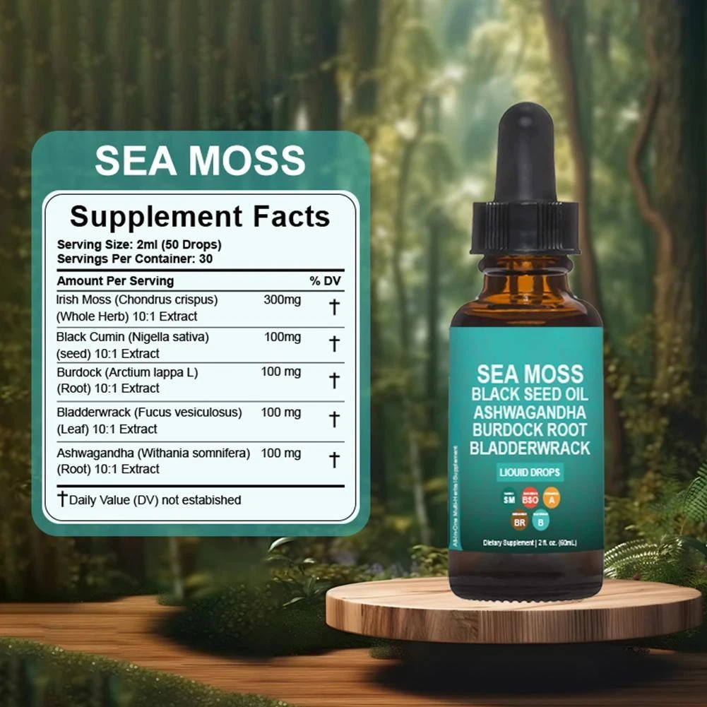 Sea Moss Black Seed Oil Ashwagandha Burdock Root Natural Health Supplement 60ml